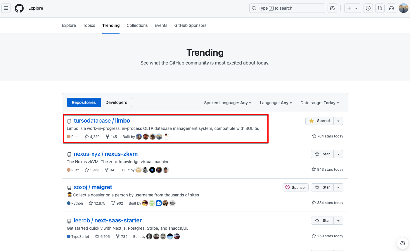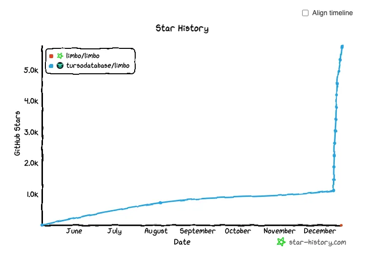 하지만 어느 날 turso라는 회사의 기술 블로그에서 limbo를 소개하는 포스팅을 보게됐습니다. Turso 기술블로그에는 새롭고 다양한 기술을 재밌게 풀어내는 포스팅이 많아서 자주 읽어보곤 했는데 제가 기여했던 오픈소스가 소개된 게 신기했습니다. 알고 보니 turso 공동 창업자가 limbo 프로젝트 창시자 ㅋㅋ...... 해당 포스팅이 바이럴을 타면서 hacker news에 등재됐고 hacker news에 등재되면서 limbo 프로젝트도 수많은 개발자들에게 노출되기 시작했습니다. 그 결과... 무려 일주일 만에 github star가 4000개가 증가하는걸 제 눈으로 확인할 수 있었습니다.