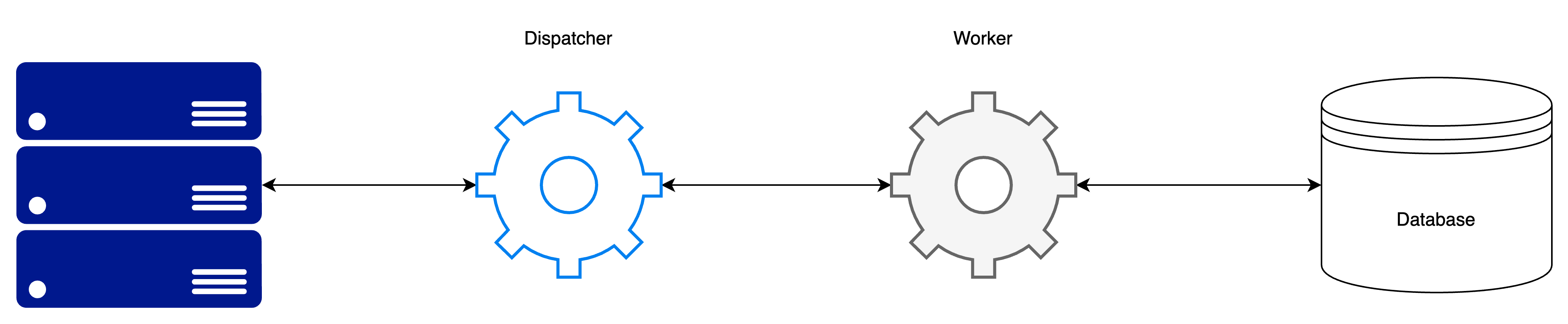 각각의 worker는 독립된 프로세스 위에서 동작합니다. 운영체제 스케쥴러에 의해 작업이 할당되고 데이터를 공유할 때 shared memory를 활용합니다. 독립된 프로세스 위에서 동작하므로 하나의 worker에 에러가 발생하더라도 전체 시스템이 다운되지 않습니다.