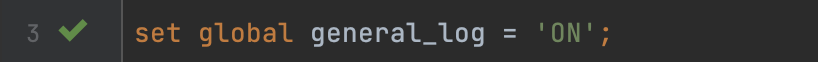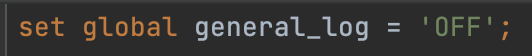 ※ 주의 ) general_log를 ON 값으로 설정하고 쿼리를 실행시키면 local file system에 쌓이는 로그의 크기가 기하급수적으로 늘어날 수 있습니다. 따라서 general_log를 ON 하고 필요한 작업이 완료되면 OFF 값으로 되돌리는 것이 권고됩니다.