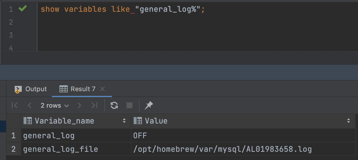 MySql은 쿼리의 실행 기록을 확인할 수 있는 방법이 있습니다. 아래와 같은 쿼리를 실행시키면 general_log 값을 알 수 있습니다. general_log가 OFF일 경우 쿼리 실행 기록이 남지 않습니다. 만약 general_log가 ON이라면 쿼리가 실행될 때마다 general_log_file에 쿼리 실행 이력이 저장됩니다.