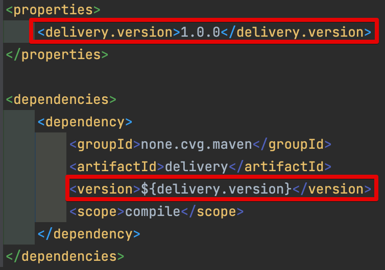 해당 POM에서 반복적으로 사용되는 값의 경우 properties에 해당 값을 설정하고 POM에서 ${}을 통해 사용할 수 있습니다.