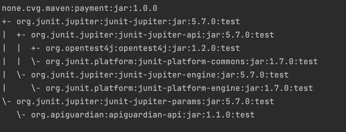 - test: test시에만 사용되는 의존성입니다. Transitive dependency로 상속되지 않습니다.