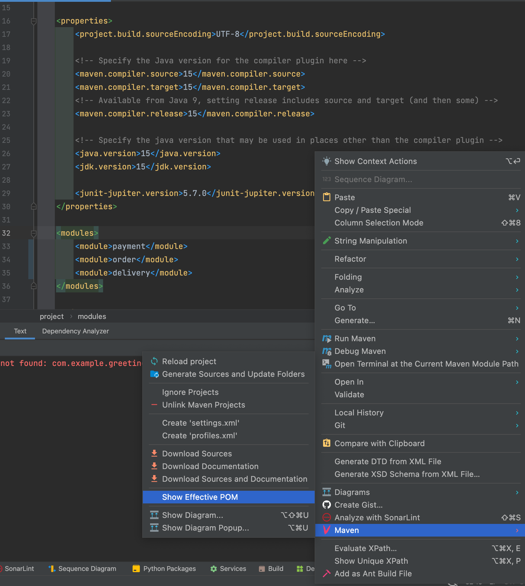 Intellij를 통해서 effective POM을 확인하는 방법은 다음과 같습니다.