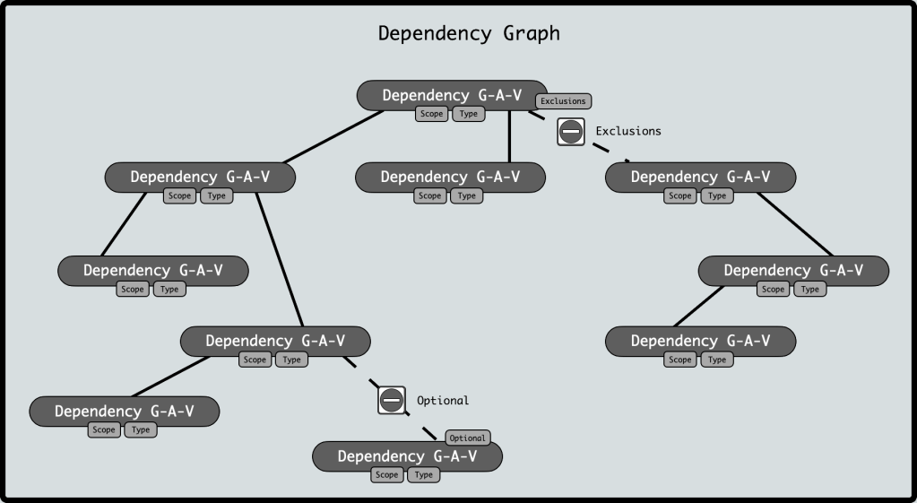 Maven 의존성 하면 transitive dependency라는 용어가 등장합니다. 프로젝트 A의 pom.xml이 프로젝트 B의 pom.xml을 부모로 설정하고, B의 pom.xml이 C라는 프로젝트의 pom.xml을 부모로 설정했을 때 C의 의존성들은 A의 transitive depency라고 합니다. 이러한 transitive dependency를 순회하면서 그리는 게 maven의 dependency tree입니다.