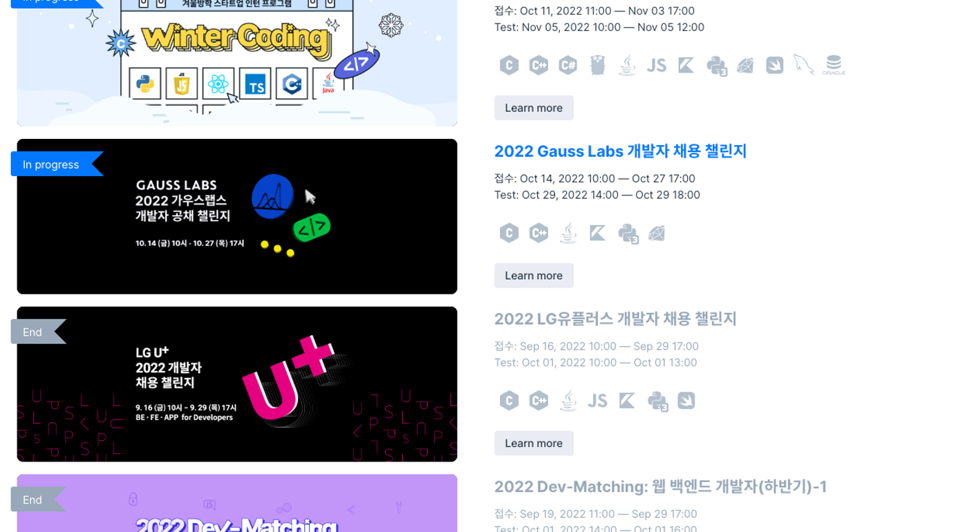 위 사이트를 주기적으로 모니터링하면 어떤 공고가 나오고 해당 공고에서 어떤 인재를 원하는지 확인할 수 있습니다. 이를 통해 학습의 방향을 정할 수 있었습니다.