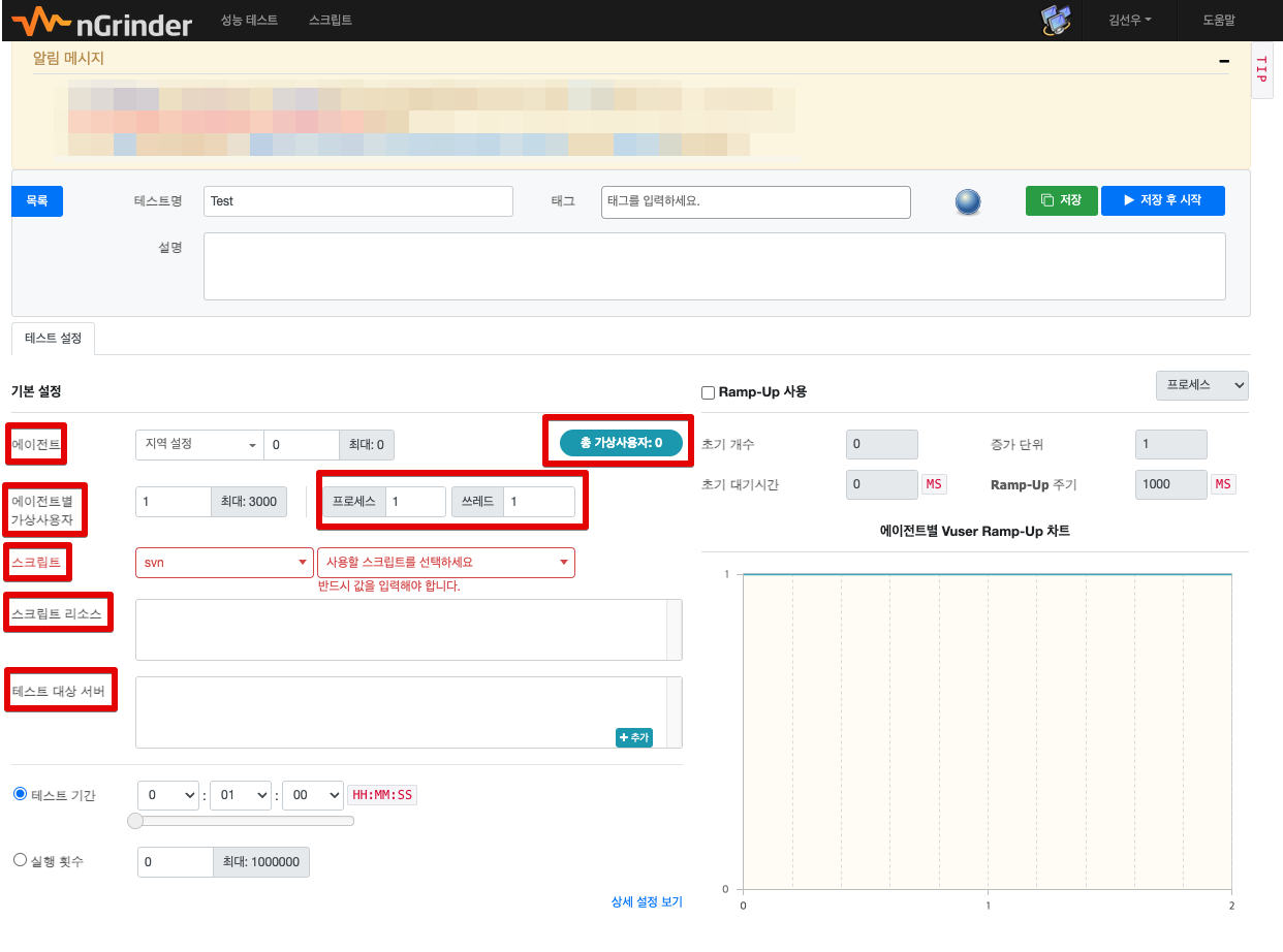 - 스크립트: 각 에이전트에서 실행하고자 하는 스크립트입니다. 테스트를 어떻게 진행할지 설정하는 곳입니다.