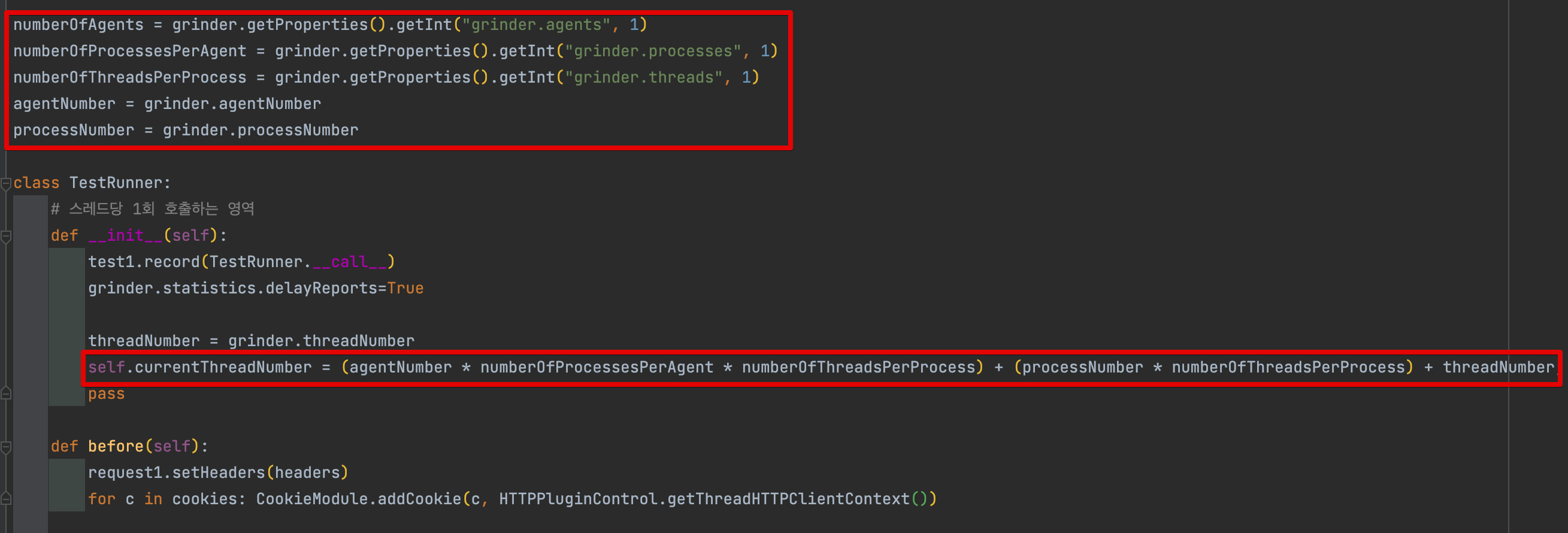 제가 스크립트를 작성하면서 유용하게 사용한 방법 중 하나는 전체 nGrinder 에이전트에서 특정 스레드를 식별할 수 있는 id를 구하는 공식이었습니다.