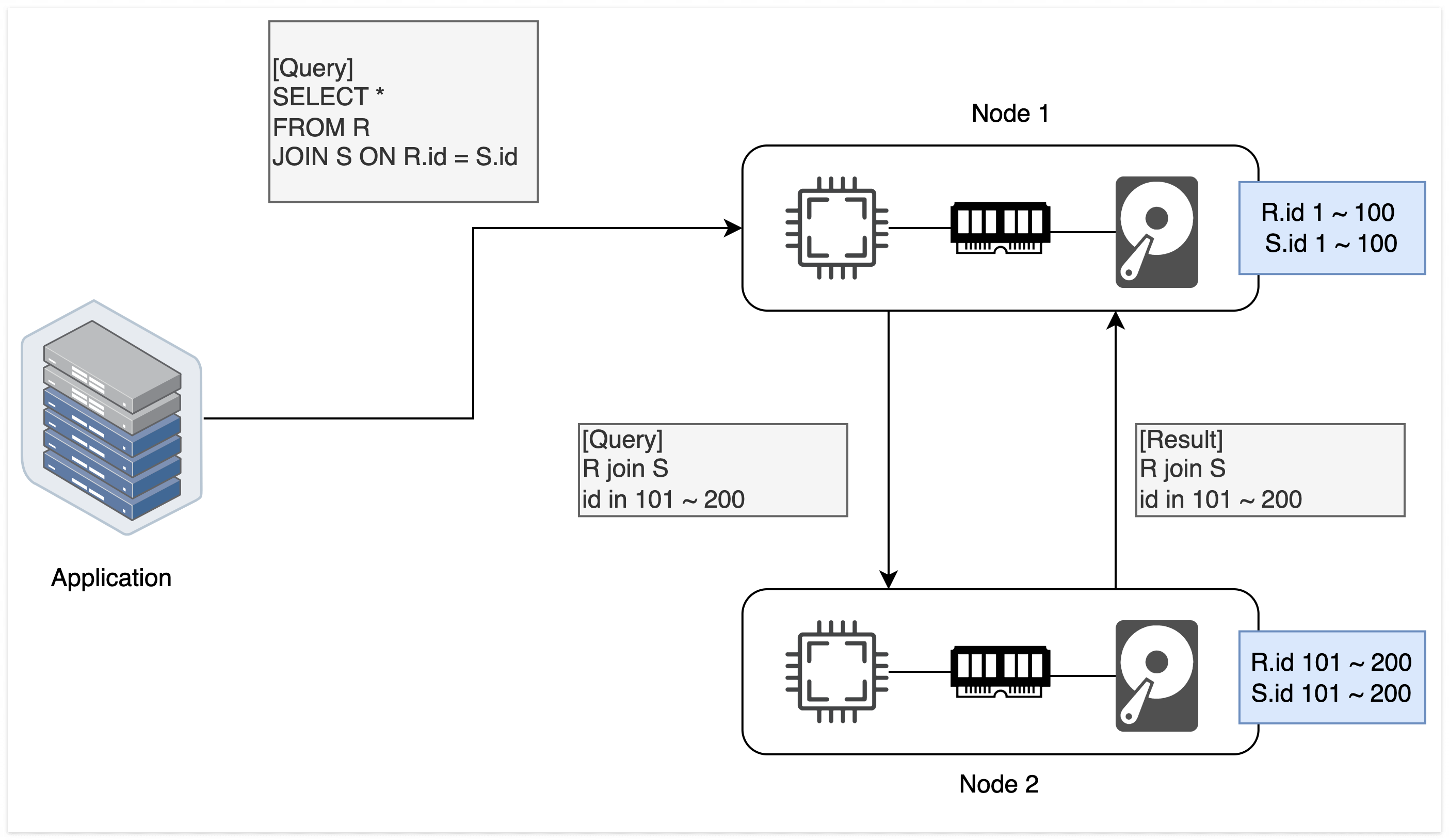 쿼리 수행에 필요한 데이터를 쿼리를 처리할 수 있는 노드로 가져오는 방법입니다. 대표적인 예시로는 전통적인 RDBMS(MySQL, PostgreSQL 등), MongoDB 와 Couchbase 등이 있습니다.
