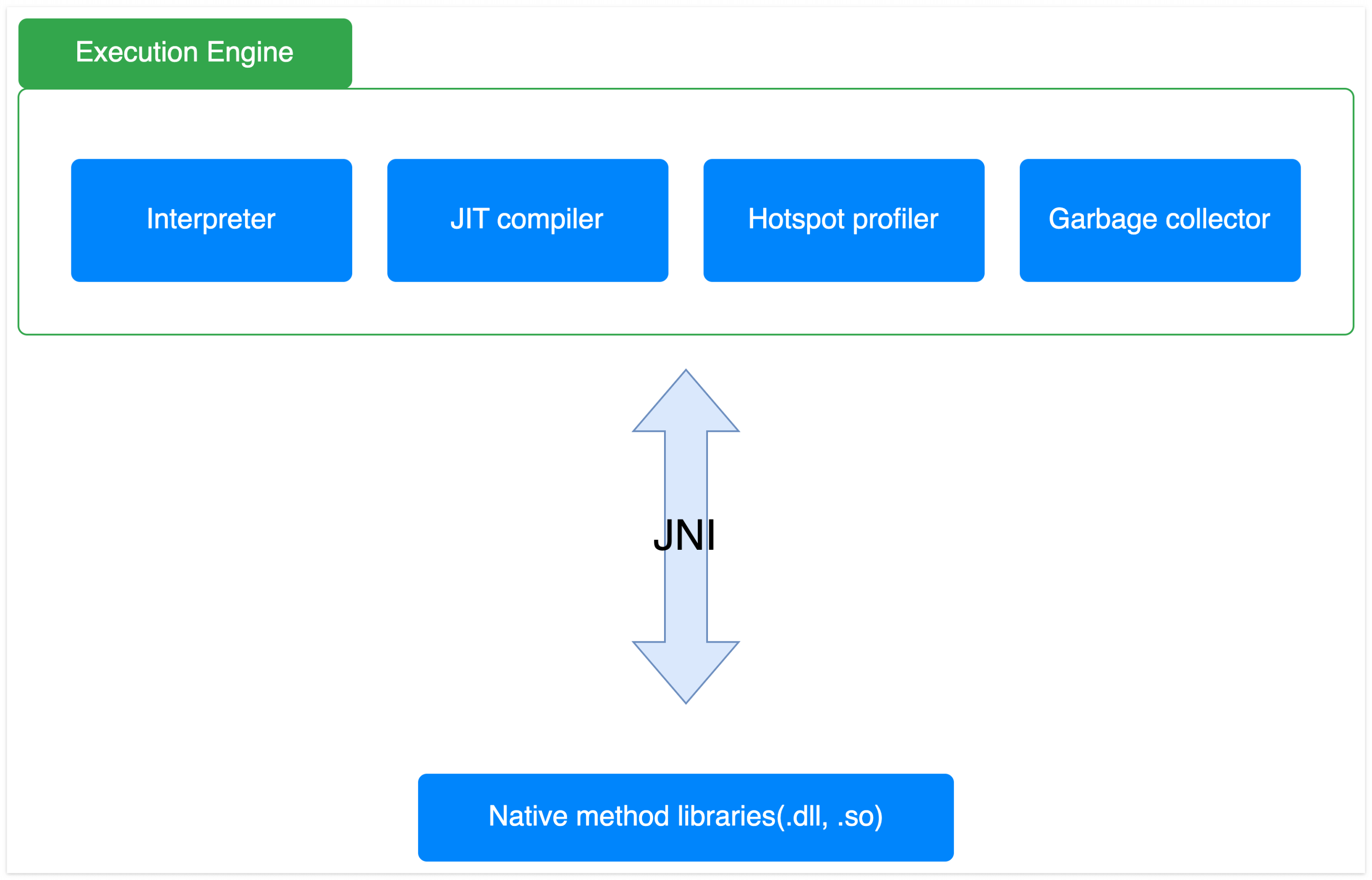 Execution engine은 JNI를 활용해 운영체제의 함수를 호출합니다. 이 과정에서 사용되는 각각의 컴포넌트에 대해 살펴보겠습니다.