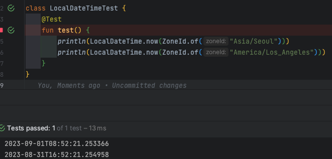 테스트 결과를 보면 service.now()를 호출 시 clock의 ZoneId에 따라 결과가 달라지는 것을 확인할 수 있습니다. 시스템에서 시간과 관련된 데이터가 필요할 때 LocalDateTimeService와 같은 시간과 관련 메서드를 제공하는 클래스를 두고 Clock을 주입받아 사용하면 타임존이 다른 플랫폼에서 안정적으로 동작하는 애플리케이션을 만들 수 있습니다.