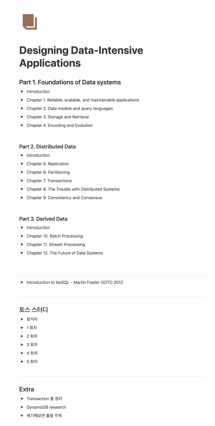올해는 스터디를 4 ~ 5개 정도 진행하였습니다. 가장 뜻깊은 스터디는 토스에서 진행한 "Designing Data Intensive Application" 스터디와 시스템 아키텍처 스터디입니다.