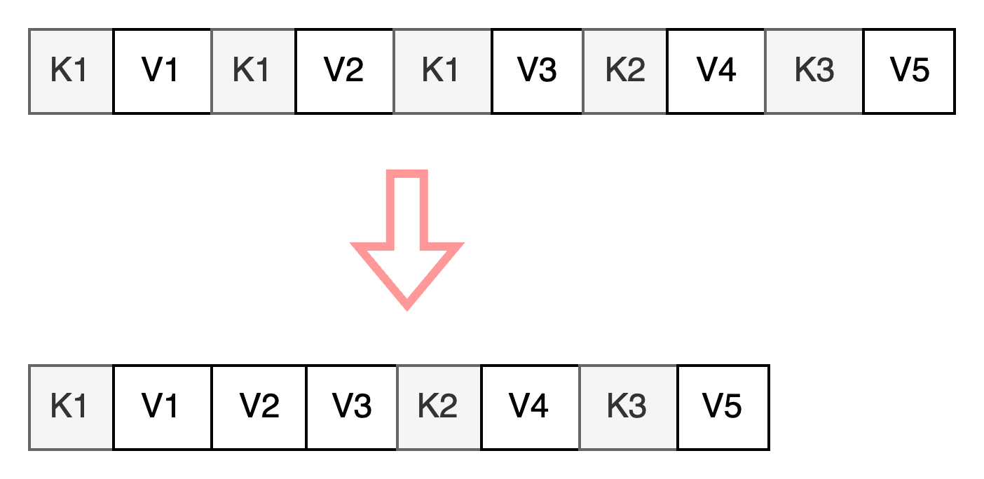 중복된 키를 각각 저장하는 게 아니라 한 번만 저장하고 관련된 값들만 따로 저장하는 방법입니다.