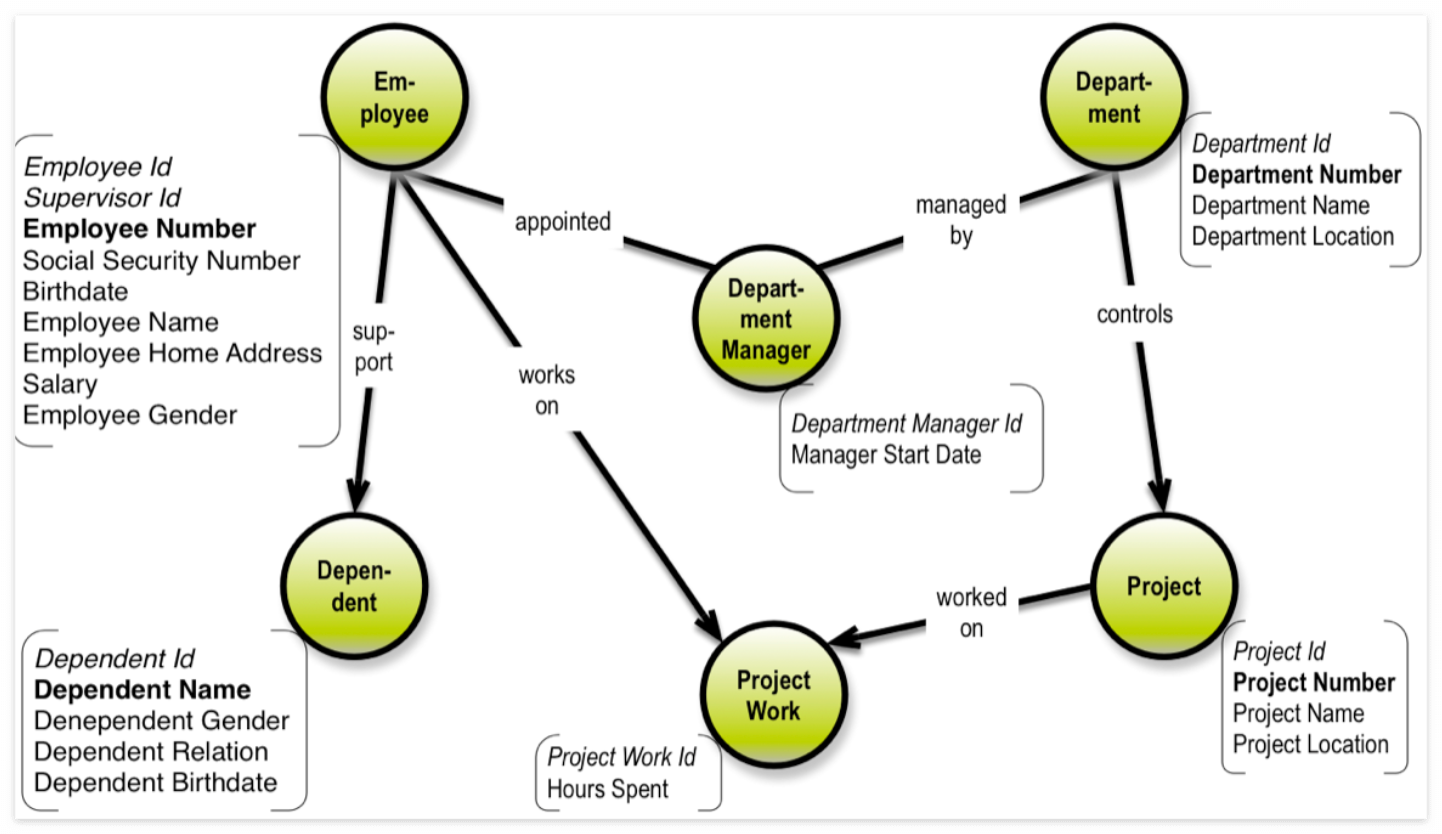 관계형 데이터베이스와 문서형 데이터베이스에서는 many-to-many 관계의 데이터 모델을 사용할 수 있지만, 활용면이나 성능적인 면에서 이에 대한 처리가 어려울 수 있습니다. 이를 해결할 수 있는 또 다른 데이터 모델로는 그래프 형태의 데이터 모델이 존재합니다. 그래프는 다음과 같은 요소로 구성됩니다: